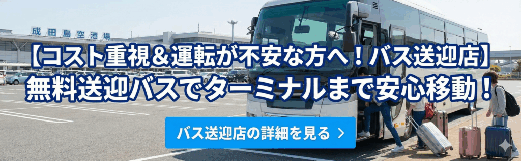 - 特徴: 店舗にて預け、送迎バスで空港へ。コストを抑えたい方に人気です。